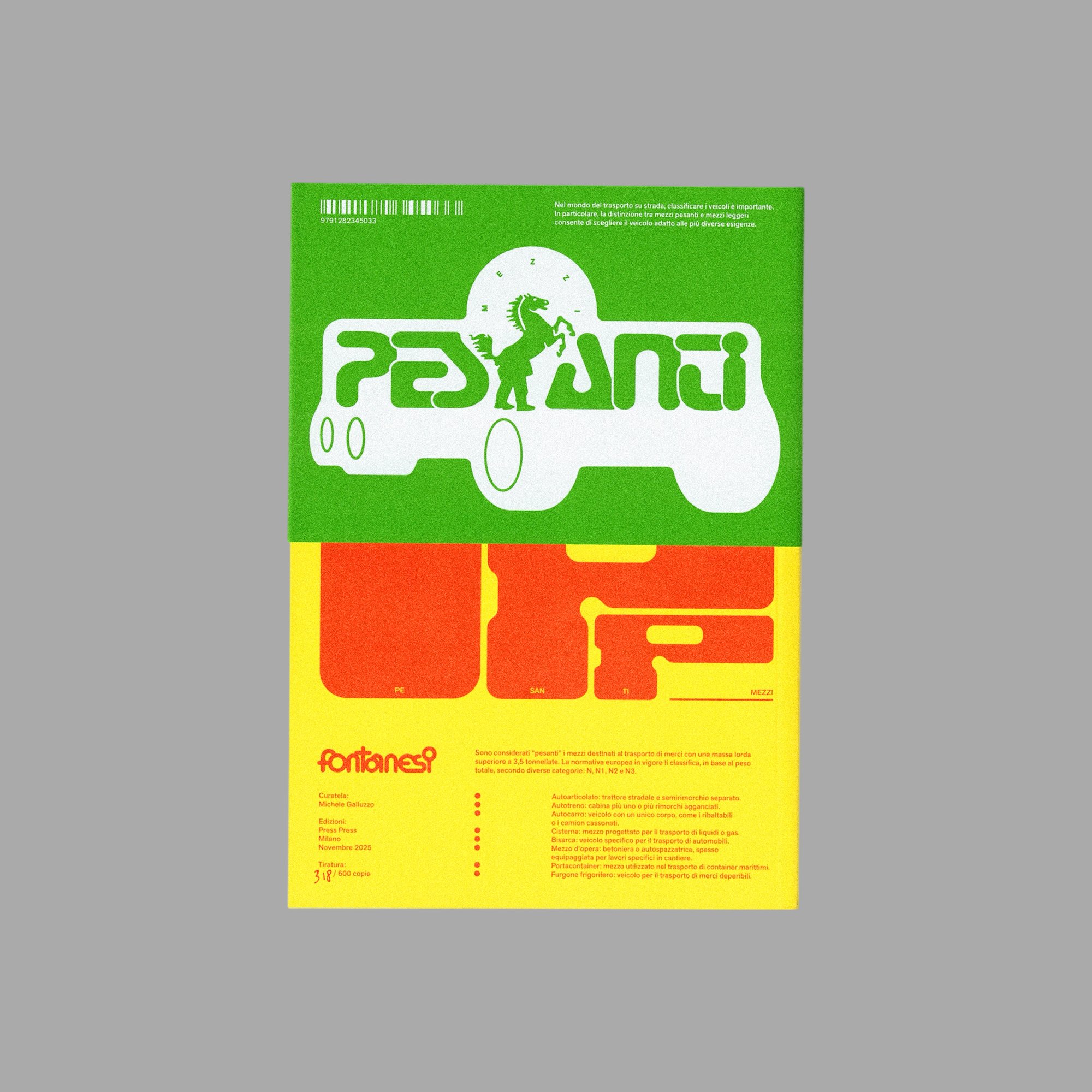 PESANTI MEZZI (VEHÍCULOS PESADOS): EL NUEVO LIBRO DEL ARTISTA MULTIMEDIA Y DISEÑADOR FONTANESI™, EDITADO Y DISEÑADO POR MICHELE GALLUZZO™ Y PUBLICADO POR PRESS PRESS™.